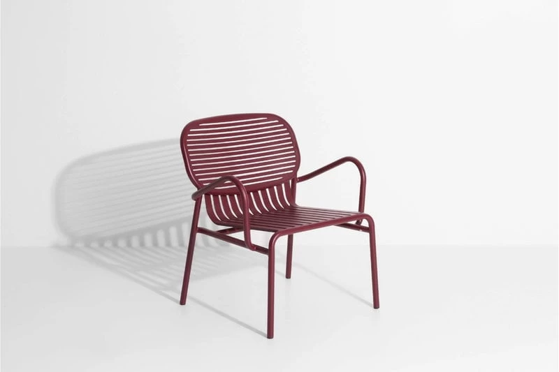 Der Loungesessel Week-end ist Teil der Petite-Friture-Kollektion, die Aluminiummöbel für den Außengebrauch umfasst. Der Loungesessel Week-end zeichnet sich durch ovale Formen mit sowohl horizontalen als auch vertikalen Lamellen an der Rückenlehne aus. Alle Stühle der Serie Week-end sind stapelbar.