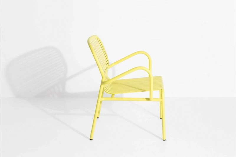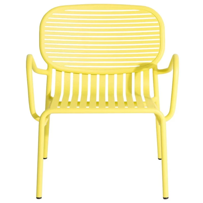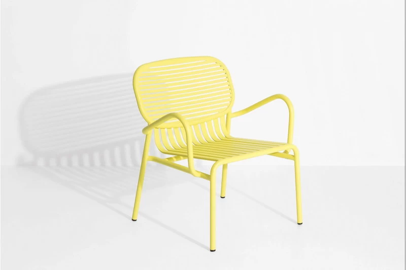 Der Loungesessel Week-end ist Teil der Petite-Friture-Kollektion, die Aluminiummöbel für den Außengebrauch umfasst. Der Loungesessel Week-end zeichnet sich durch ovale Formen mit sowohl horizontalen als auch vertikalen Lamellen an der Rückenlehne aus. Alle Stühle der Serie Week-end sind stapelbar.