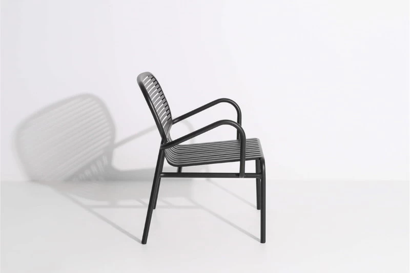 Der Loungesessel Week-end ist Teil der Petite-Friture-Kollektion, die Aluminiummöbel für den Außengebrauch umfasst. Der Loungesessel Week-end zeichnet sich durch ovale Formen mit sowohl horizontalen als auch vertikalen Lamellen an der Rückenlehne aus. Alle Stühle der Serie Week-end sind stapelbar.