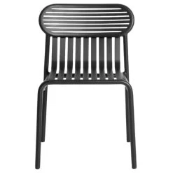 Der Stuhl Week-end ist Teil der Petite-Friture-Kollektion, die Aluminiummöbel für den Außengebrauch umfasst. Der Stuhl Week-end zeichnet sich durch ovale Formen mit sowohl horizontalen als auch vertikalen Lamellen an der Rückenlehne aus. Alle Stühle der Serie Week-end sind stapelbar.